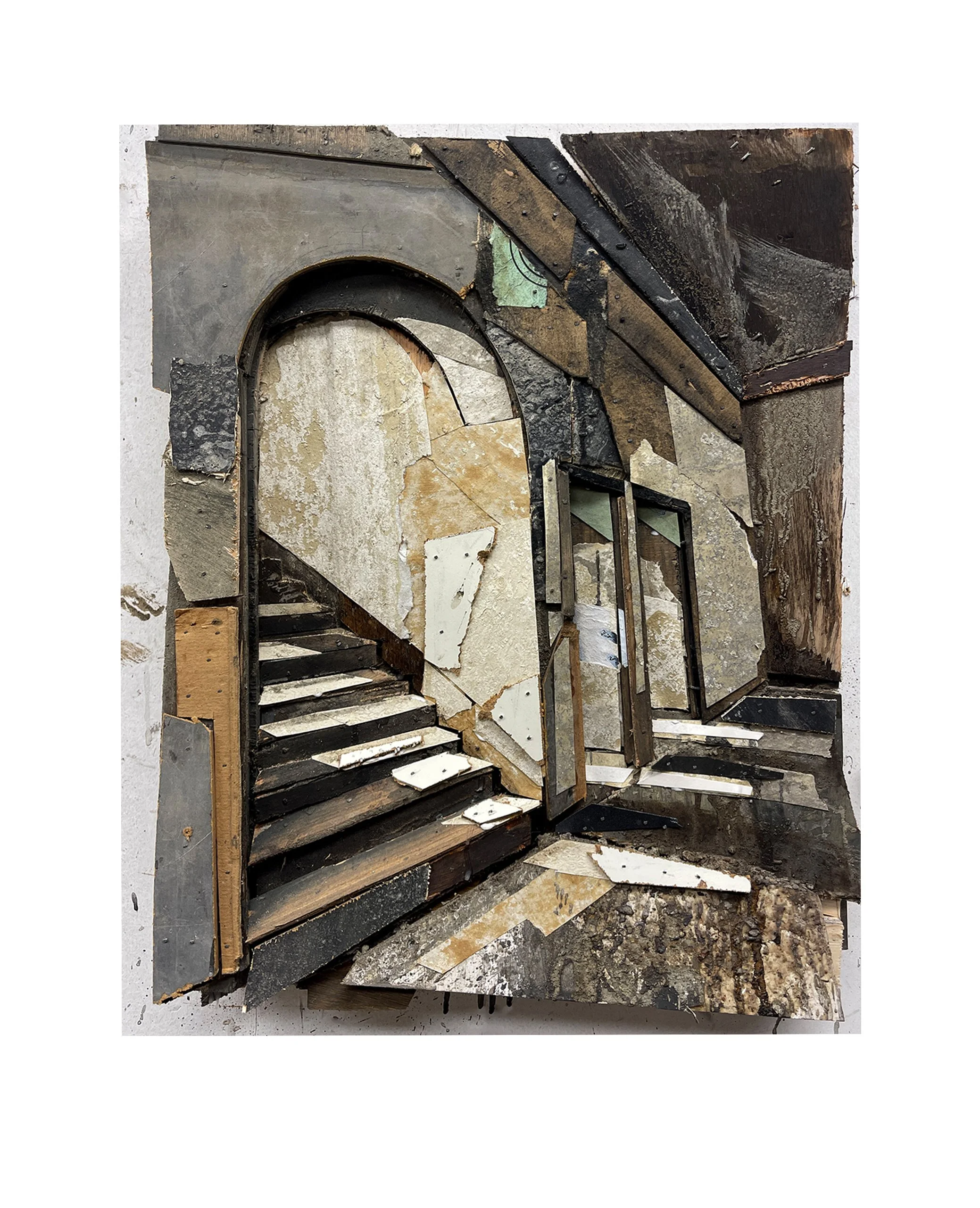 Title: Dark matter 18Material: Wood, stained wallpaperDimensions 40x 50 cmYear: 2025Private collection